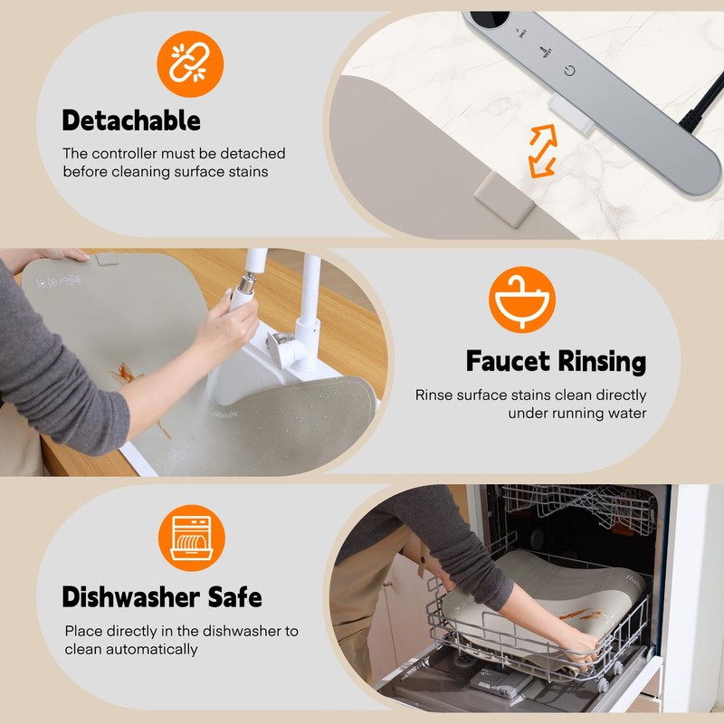 - Washable Design: The control board and heating board of our food warming mat are detachable. Simply remove the control board, and the heating board is waterproof and washable, you can put it in the dishwasher for cleaning, spend more time enjoying your meals and less time cleaning up.