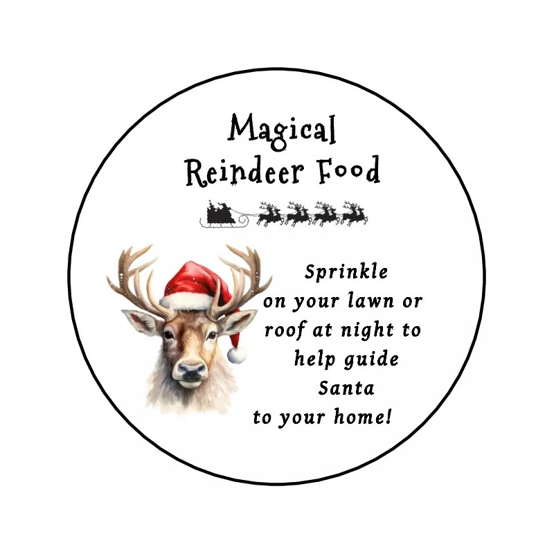Homemade 30 Christmas Reindeer food envelope seals, stickers labels, tags, round