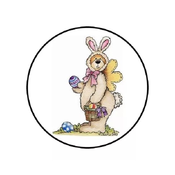 Homemade 48 EASTER BEAR ENVELOPE SEALS LABELS STICKERS 1.2" ROUND