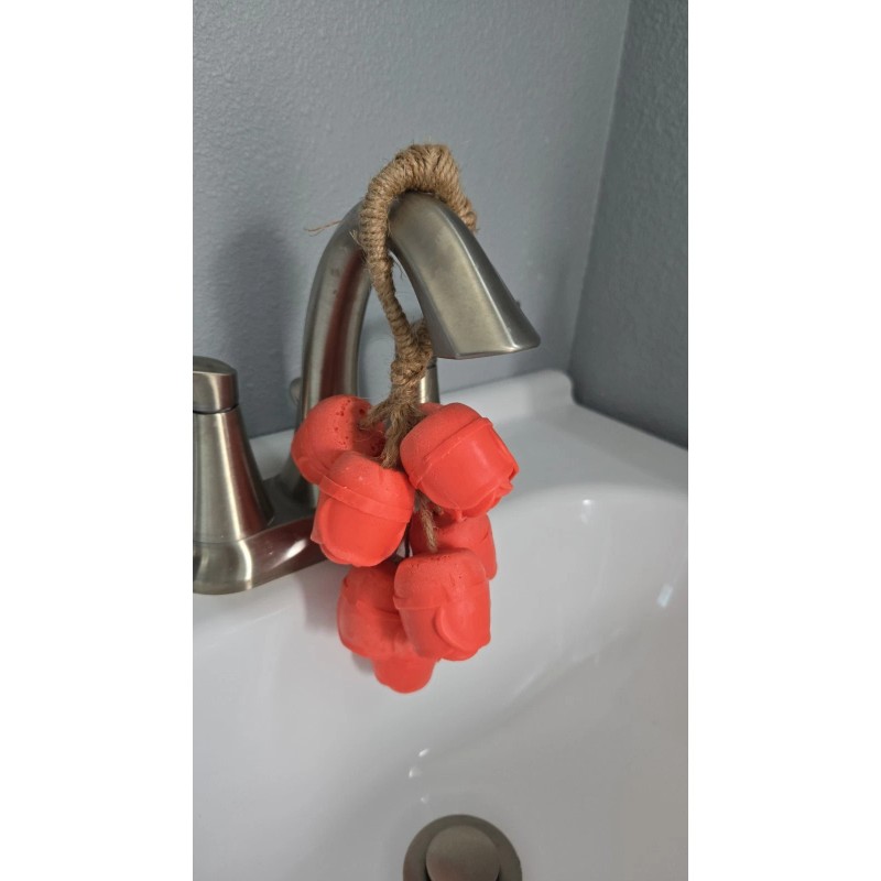 This wonderful soap, made with essential oils and vitamin E, leaves your hands soft and a lasting fragrant. It's so practical that you can hang it in your bathroom or kitchen. Enjoy it!