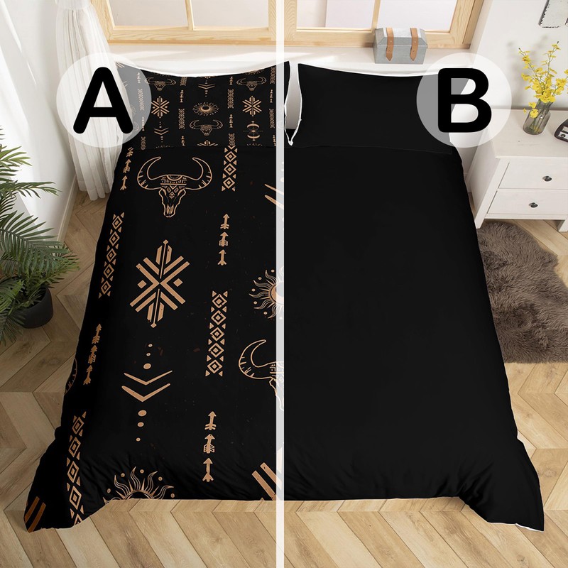 Homemissing Western Aztec Bed Linen Set 135 x 200 cm Children's Southwest Geometric Vintage Bed Linen Set Bohemia Boho Bull Skull Tribal Abstract Black Brown Beds Bedroom
