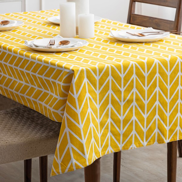 HOMEMONDE Cotton Dining Table Cover 40 x 60 Inches Arrow Printed Table Cloth for 4 Seater, Rectangular Centre Table Cover - Yellow