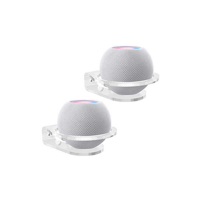 HomeMount Compatible with HomePod Mini Wall Mount - Sturdy Clear Acrylic Wall Shelf Holder, Space Saving Solution Bracket (2-Pack)