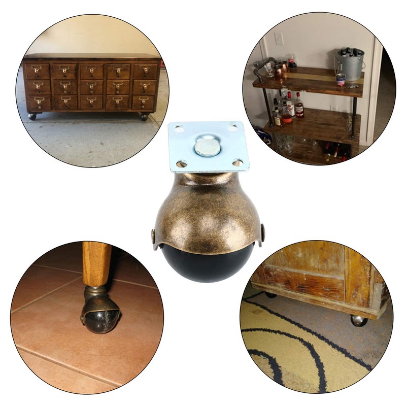 Homend 4-Pack Antique Copper Ball Caster for Sofa Furniture,Bench & Ottoman Using for Hardwood Floor (2-inch)