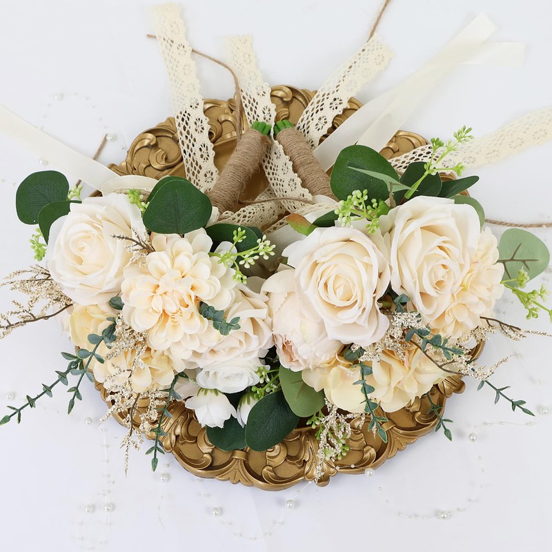HOMENERGY Set of 6 Bridesmaid Bouquets for Wedding, 9 Inch Boho Bridesmaid Flowers for Ceremony Anniversary Centerpieces Decorations, Artificial Rose Bouquets Romantic - Beige