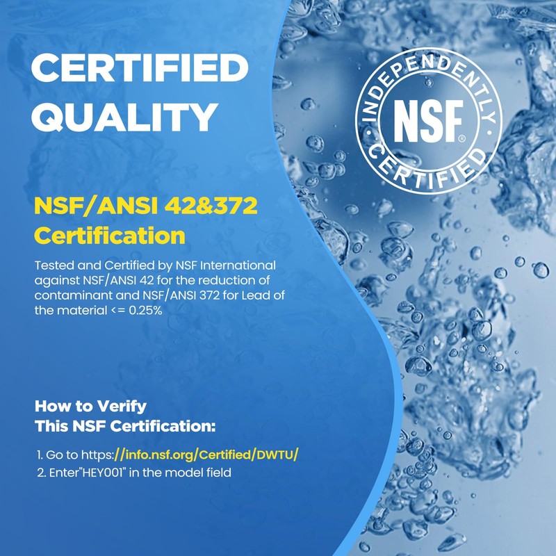 - CERTIFICATED CRAFT, RELIABLE QUALITY - The filter replacement is made of food-grade material without BPA and has the verified effect under NSF/ANSI 42. It's also tested against NSF/ANSI 372 for lead of the material less than 0.25%, for which you can confidently choose this filter, knowing it's safe and trustable for your use.