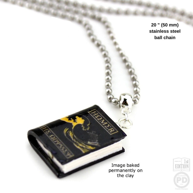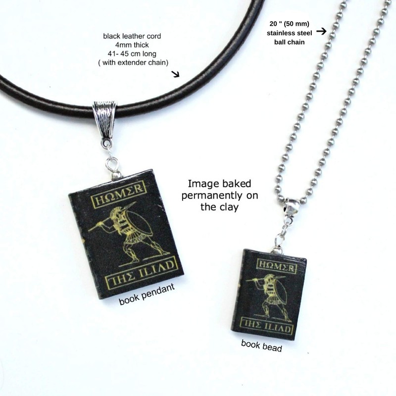 Homer Iliad or Odyssey Clay Mini Book Bead Pendant Necklace Chain Cord Extender Clasp Unisex