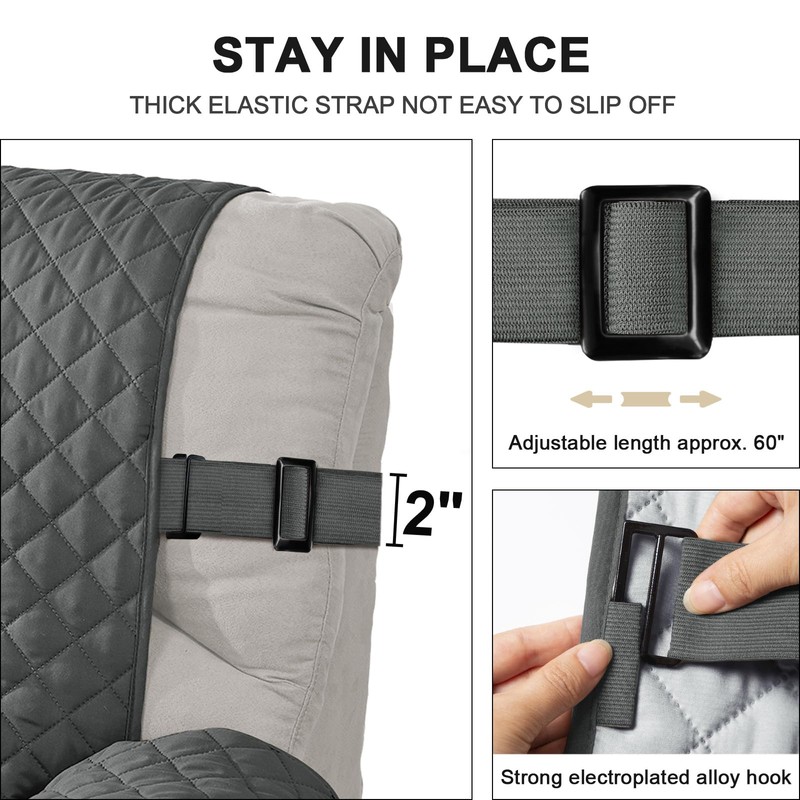 - STAY IN PLACE: Our recliner covers have elastic straps to secure the cover to the recliner better, and you can easily install it in just a few minutes to give your recliner chair a new look. NOT RECOMMENDED for LEATHER RECLINER.
