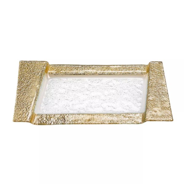 13 in. Handcrafted Gold Snack or Vanity Tray HomeRoots offers a wide variety of choices, in the tensofthousands and growing, in furniture, lighting and home decor products at extremely competitive pricing. Show your sense of fashion and leave a lasting impression on your friends and guests with the aesthetic of your home with this amazing centerpiece. Its style is just what your rooms need to have that ideal look. This centerpiece is an expertly crafted piece, made from high grade glass, which also exhibits a and colors. You want your piece to be with you longterm as well, and thats exactly what this entrancing centerpiece will give you. Its made from all natural, environmentally sustainable, components. As for measurements, they are 1 for height, 7 for width, 12.75 for depth, and it weighs 3 pounds. If you want a welldesigned, graceful, and durable centerpiece, this is the one for you. Specifications. Color Silver. Material Glass. Size 13. Dimension 1 H x 7 W x 12.75 D