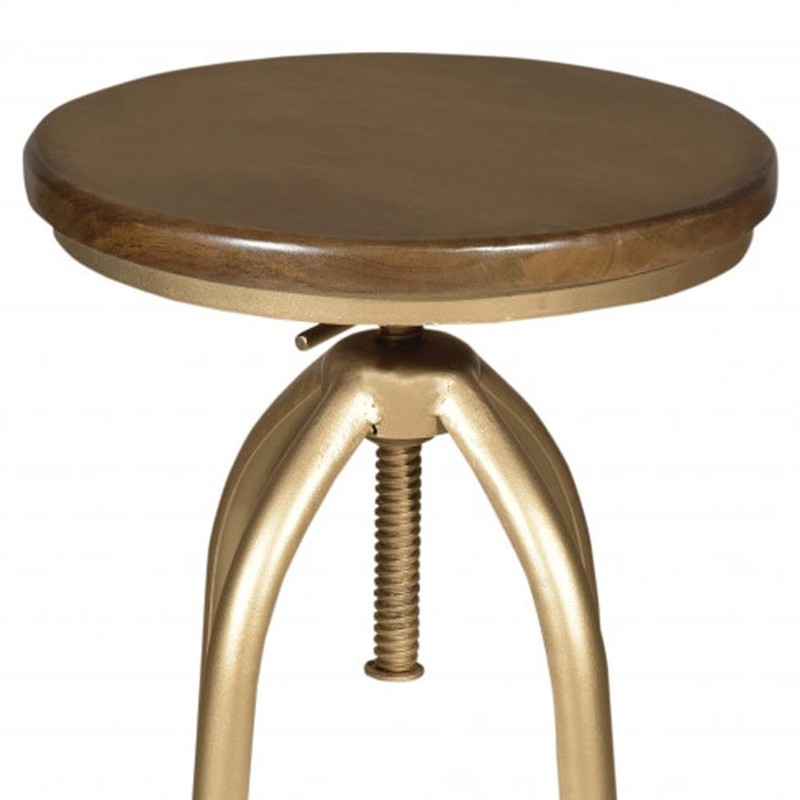 - Features modern industrial styling with an antiqued bronze/gold finish and a solid wood seat.