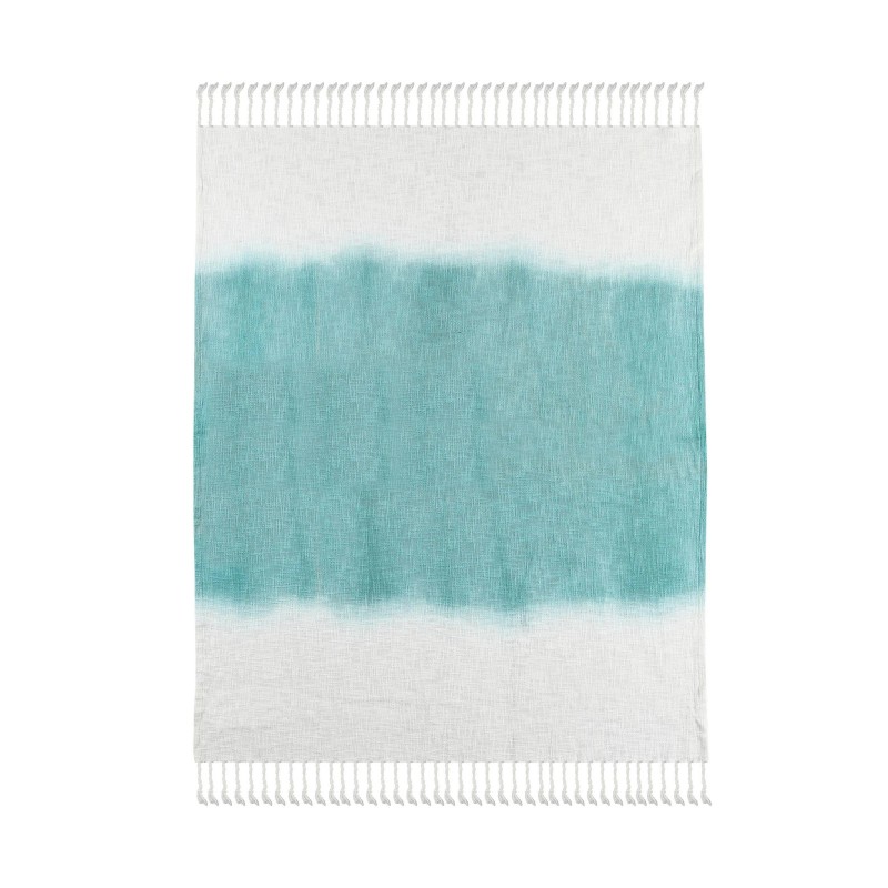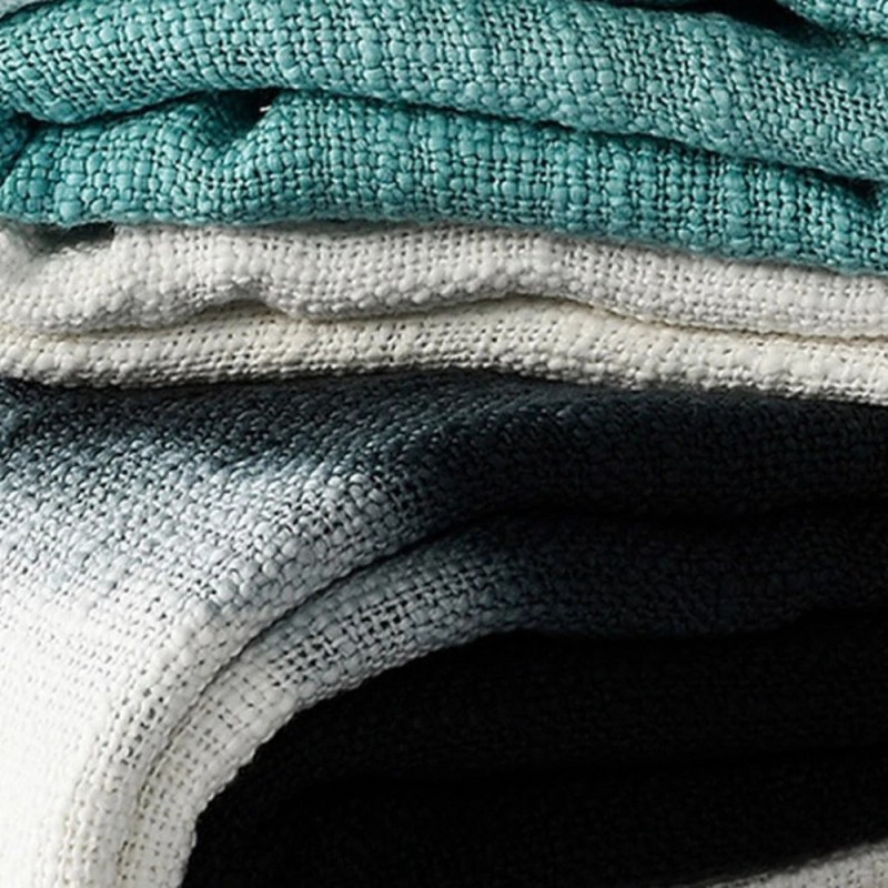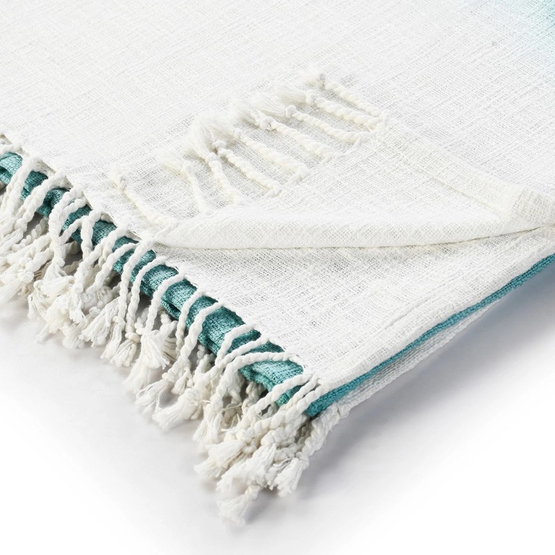 HomeRoots 50" X 60" Blue and White Woven Cotton Ombre Throw Blanket with Fringe