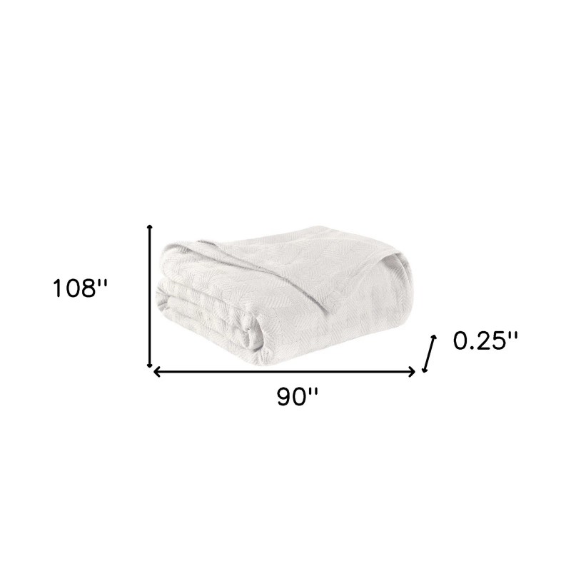 HomeRoots King White Cotton Basketweave Geometric Blanket