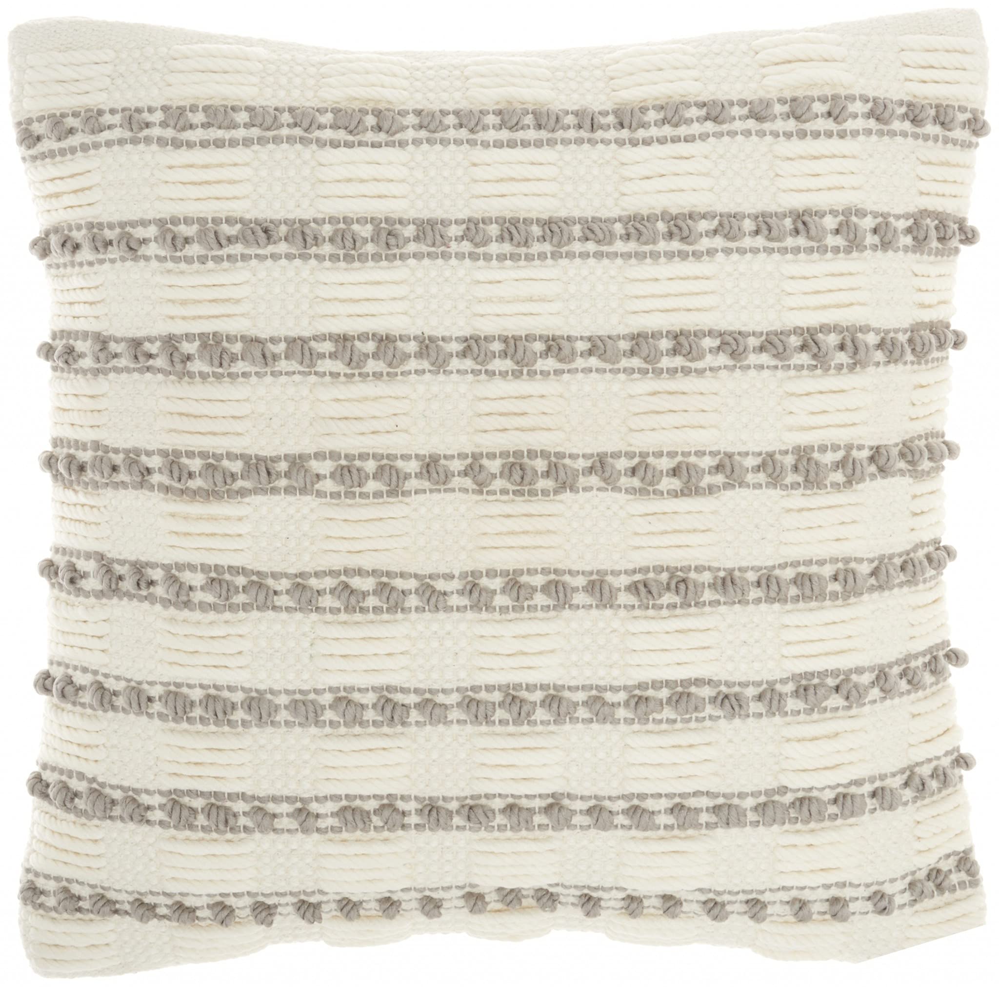 HomeRoots Light Gray And Ivory Textured Stripes Throw Pillow