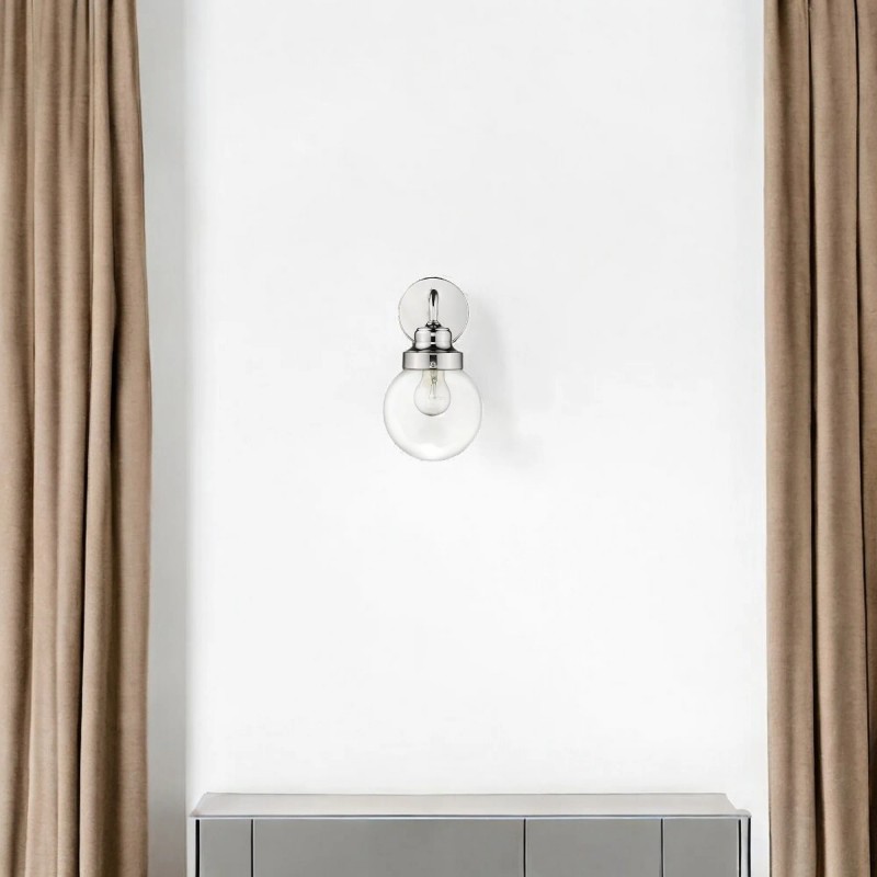 Homeroots One Light Silver Wall Sconce with Round Glass Shade