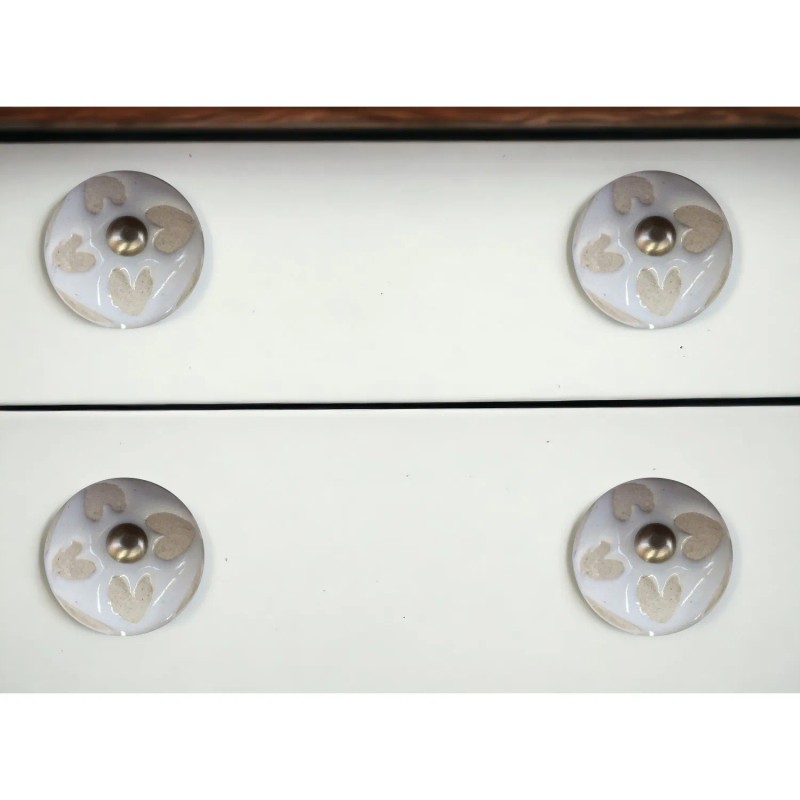 Transform your space quickly and easily with this set of twelve beige and white floral ceramic drawer pull knobs. Improve the look of your old boring or builder grade furniture and cabinetry with these high quality round knob traditional style knobs. Hand-painted by talented artisans, these knobs will add a touch of artisanal design. 1.5-inch h x 1.5-inch w x 1.5-inch d.