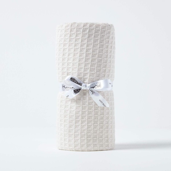 HOMESCAPES - 100% Organic Cotton Waffle Throw - Natural - 125 x 150 cm - Super Soft Combed Cotton