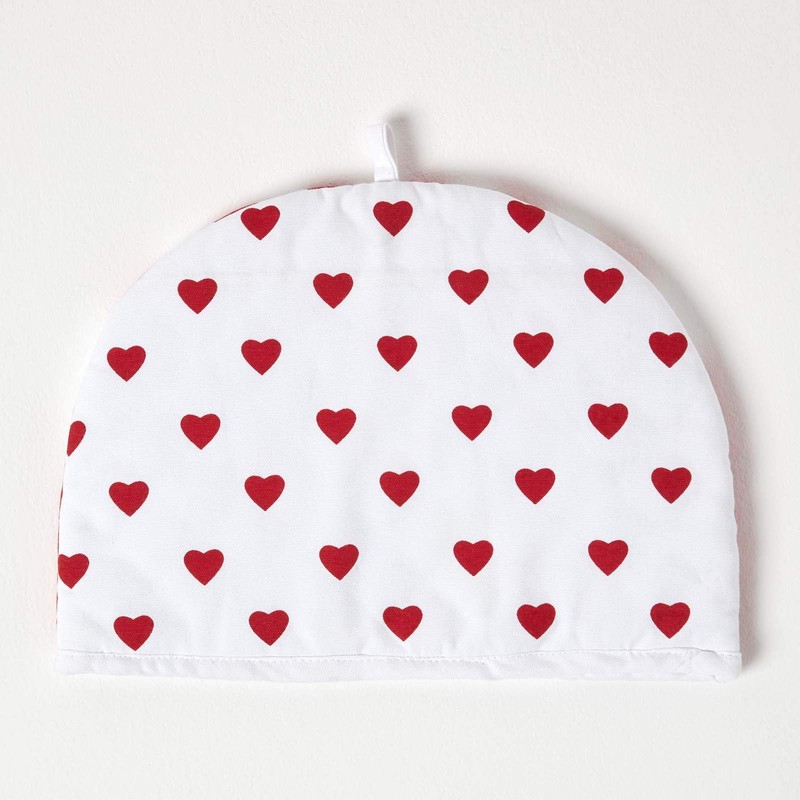 HOMESCAPES Double Design Tea Cosy red Hearts Muff Teapot Warmer 100% Cotton