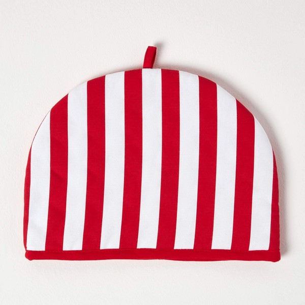 HOMESCAPES Double Design Tea Cosy Thick Stripes Red Muff Teapot Warmer 100% Cotton