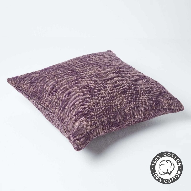 HOMESCAPES Mauve Dark Purple 18 x 18 Inch Nirvana Pure Slub Cotton Cushion Cover Coordinating with Matching Throws and Bedspreads