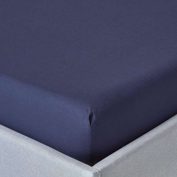 - High quality percale fitted sheet with elastic all around made from 100% Egyptian cotton in 200 thread count. Size: approx. : 160 x 200 cm. Base height: approx. : 30 cm. Colour: dark blue.