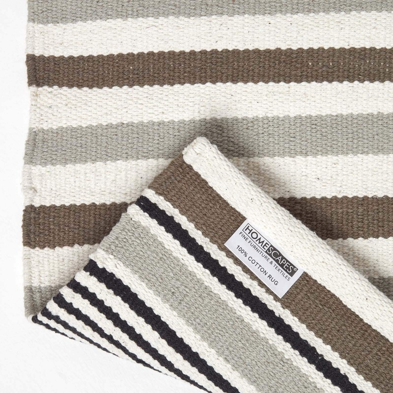HOMESCAPES Small Modern Striped Cotton Rug Black and Grey 60 cm x 100 cm, (2ft x 3ft) (S) Contemporary Scandinavian Living Room & Bedroom Mats