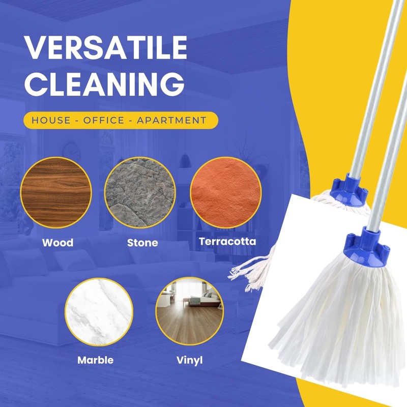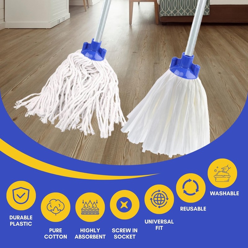 - HIGHLY ABSORBENT FLOOR CLEANING MOP: When it comes to maintaining clean and dry floors, our cotton mop excels! With its exceptional absorbent properties, impressive scrubbing power, and quick spill cleanup efficiency, a cotton mop refill is the ideal choice. Suitable for use at home, in the office, or even as a commercial mop.
