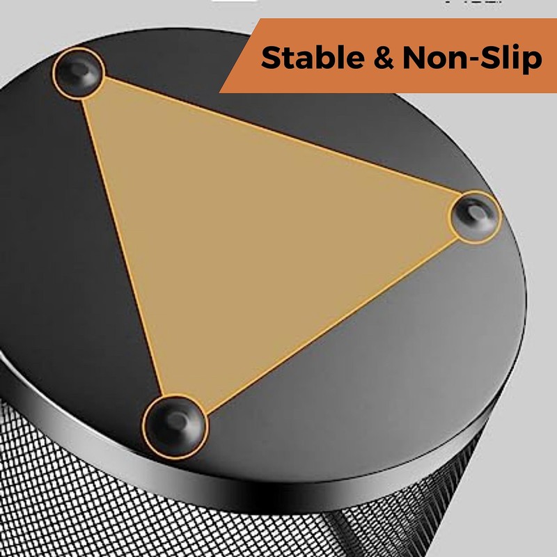 - NON-SLIP METAL BASE: The mesh office trash can has a non-slip metal base that provides a sturdy and stable base for sitting. The metal base is intended to keep the kitchen bin from slipping or moving on smooth or slippery surfaces like tile or polished concrete floors. This helps keep spills and messes to a minimum. This is especially useful in commercial or industrial environments where the garbage can is subjected to frequent use and handling.