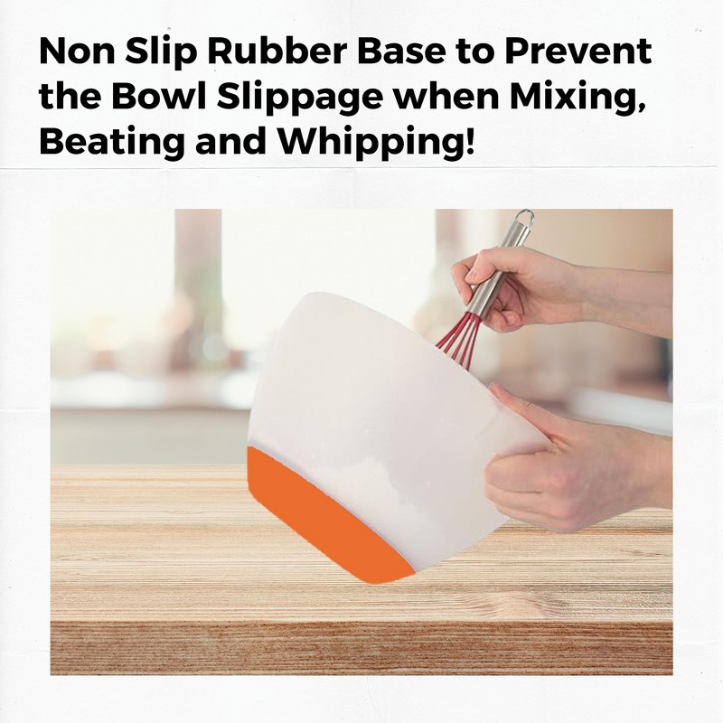 Designed with a non-slip rubber base, you can say goodbye to wobbly mixing woes. Enjoy stability like never before, even during vigorous whisking and stirring. The convenient easy-pour lip ensures that your culinary creations land perfectly on the plate, not the countertop.