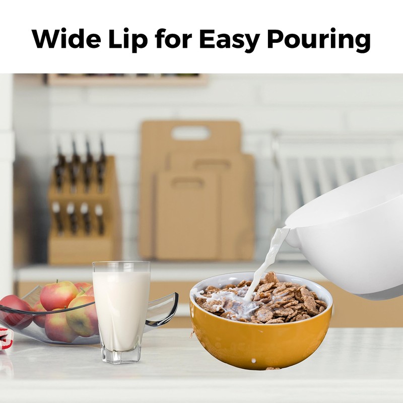 Designed with a non-slip rubber base, you can say goodbye to wobbly mixing woes. Enjoy stability like never before, even during vigorous whisking and stirring. The convenient easy-pour lip ensures that your culinary creations land perfectly on the plate, not the countertop.