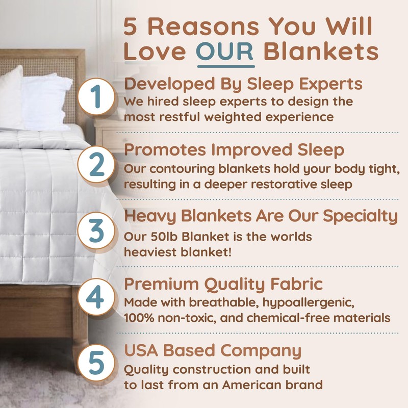 - Enhanced Relaxation: Our weighted blankets employ a relaxing gravity weighted blanket effect