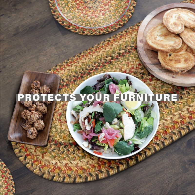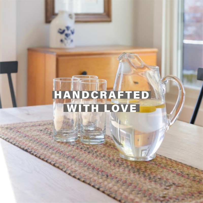 - BRAIDED TABLE RUNNER FOR A HANDMADE AND DURABLE ACCENT: Nothing beats the quality and craftsmanship of a handmade product, especially when it comes to braided rugs. Our braided table runner is made in-house in our 45 years old factory, with long fiber jute yarns that won’t pill and strong poly-cotton yarns that won’t fray. Each braid is tightly stitched together, leaving no gaps or spaces. Our braided table runner is also reversible, so you can flip it over for a fresh look.