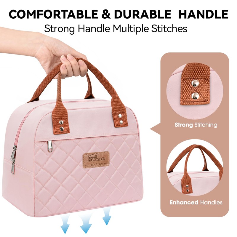 HOMESPON Insulated Lunch Bag for Women Adult Work Ladies Men Cool Bag Lunch Box Container Tote Bags for School Picnic or Travel(Pink)