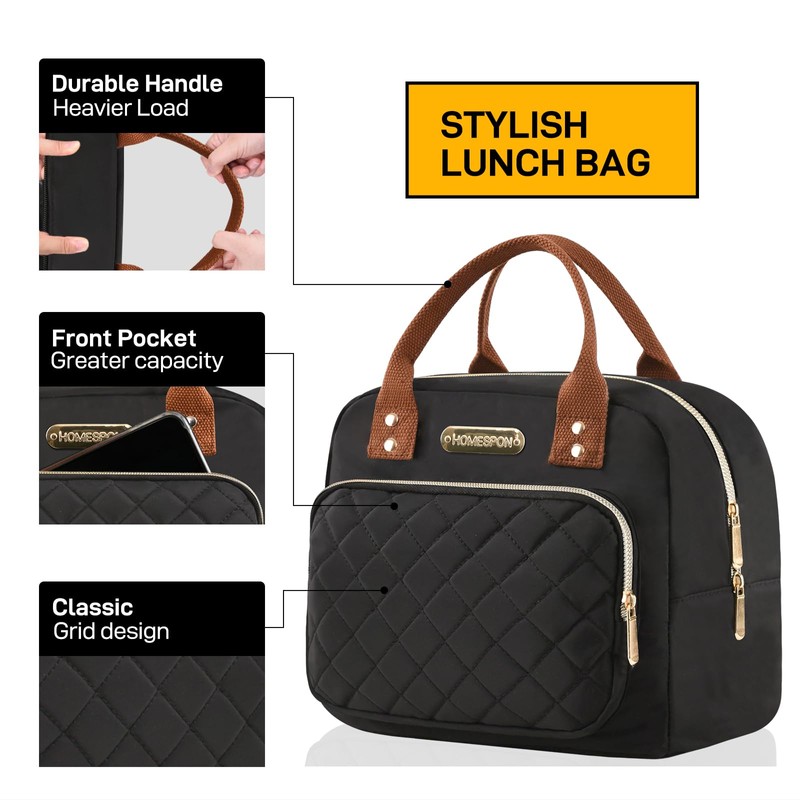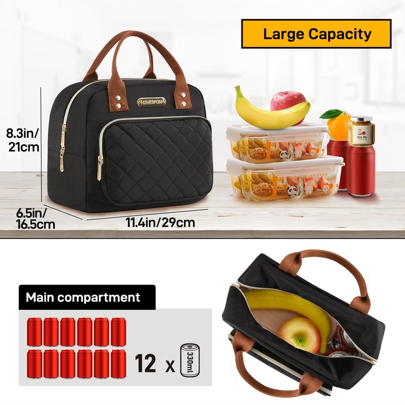 - Easy to carry: Light and portable, comfortable handles and smooth double zippers, designed to be a fashion tote.Perfect for work meal, picnic meal, shopping or diet management