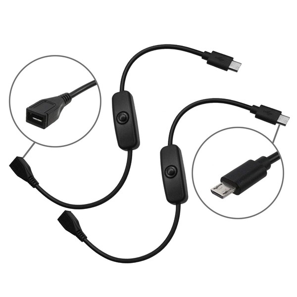 HomeSpot 2 Pack Micro USB Cable with Power Switch Raspberry Pi USB 2.0 Short Micro-USB Charger with Click Push Button