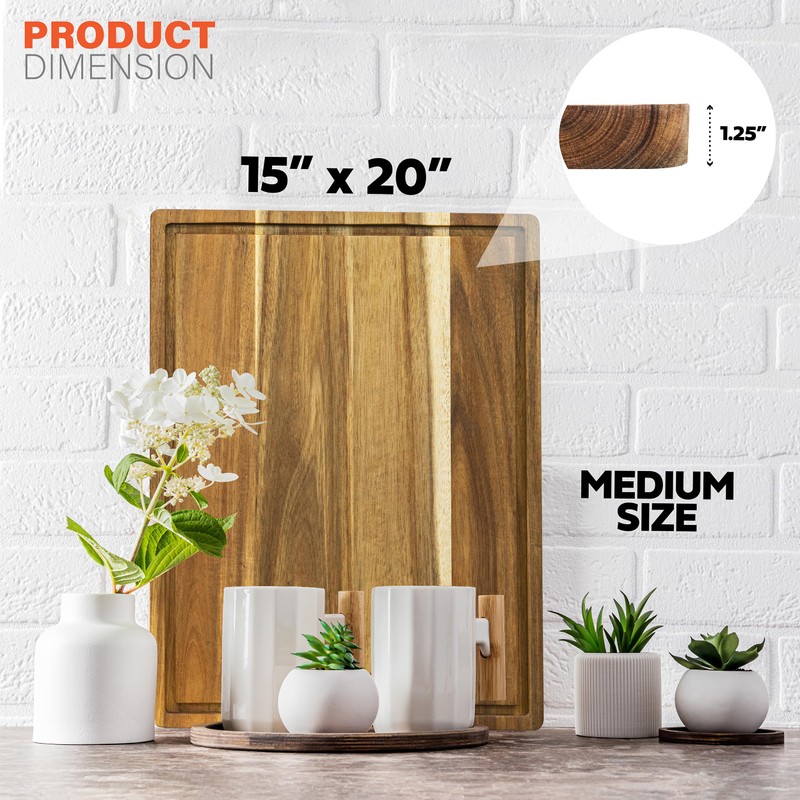 - Eco-Friendly Elegance: Crafted from FSC-certified Acacia wood, our 15x20x1" board showcases rich, sustainable beauty.