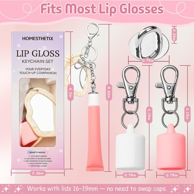 Homesthetix-Lip Gloss Keychain-Lip Gloss Holder Keychain with Mirror - Lip Gloss Charms Fits Most Glosses 16-19 mm - Stylish Lip Balm keychain for Bags, Purses- Lip Balm Holder Use at Home, Work