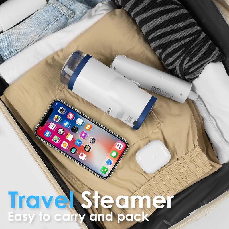 - 【2 in 1 Foldable Steamer】The HOMETOP steamer can iron clothes horizontally or vertically without an ironing board. It can be easily folded, compact and convenient. The portable steamer does not take up space in your luggage, allowing you to enjoy your trip with ease.