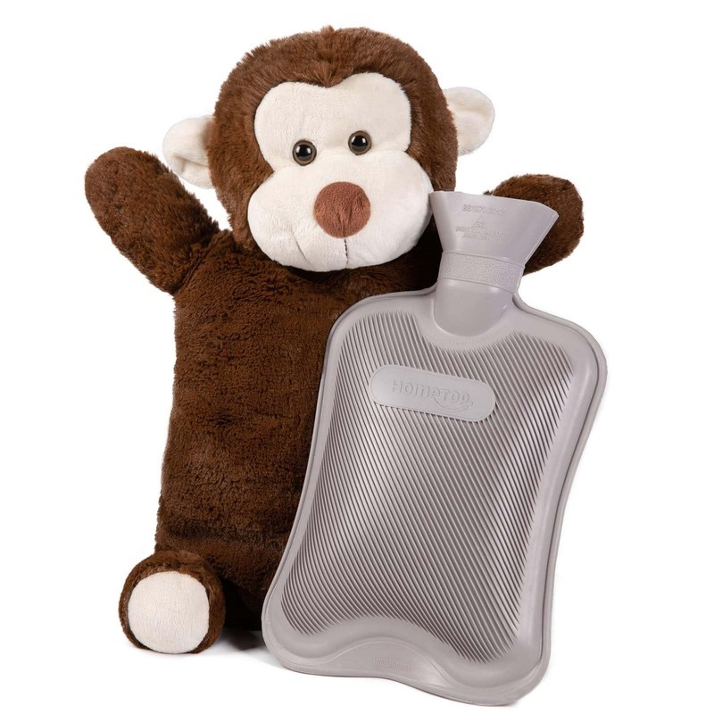 HomeTop Premium Classic Rubber Hot or Cold Water Bottle with Cute Stuffed Monkey Cover (2 Liters, Gray)