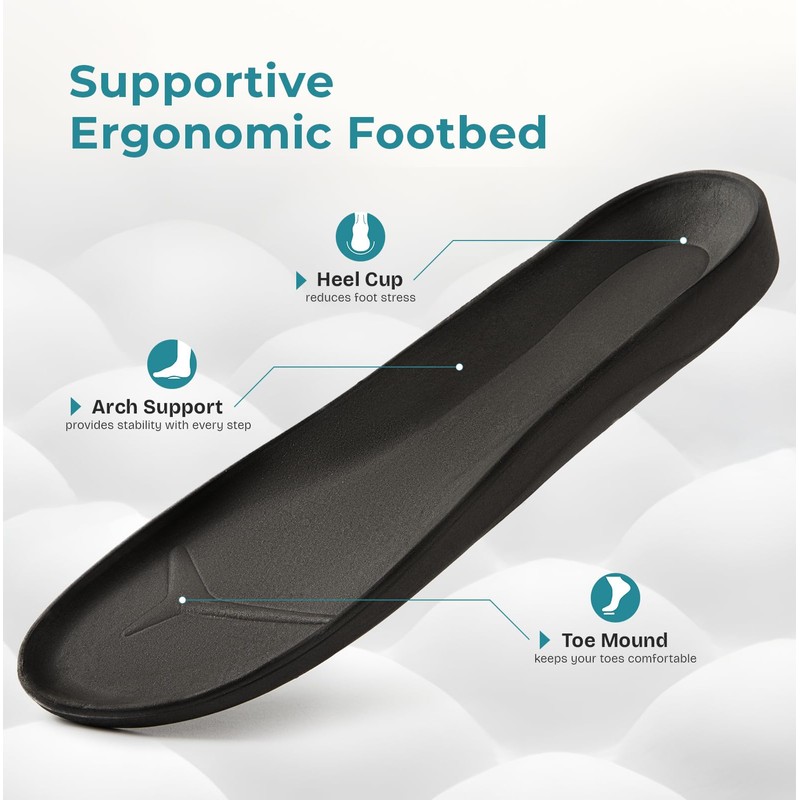 - Supportive EVA Footbed: Sink into the high-density cushioned memory foam that cradles your feet like a cloud. Beneath, an ergonomically designed EVA footbed offers arch support that never quits, combining lightweight materials and a no-sink promise. Imagine walking on air—but better. Every step feels like a hug for your feet
