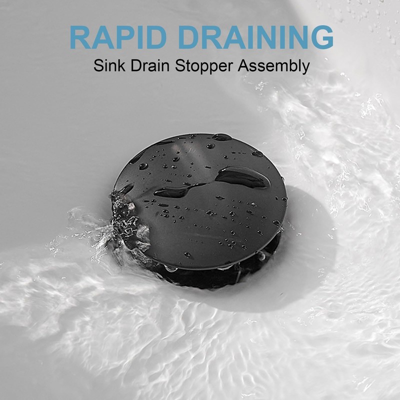 Homevacious 1 5/8" Bathroom Faucet Vessel Vanity Sink Pop Up Drain Assembly Stopper Fits Bathroom Standard Sink Hole 1-1/2" to 1-3/4" Matte Black Plug Without Overflow Push & Seal