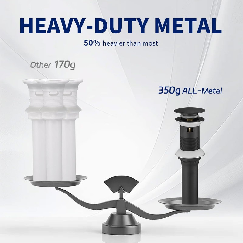 - All Metal Rustproof: Pop up drain Body is main made of high quality solid brass and SUS304 stainless steel (NOT PLASTIC), ensuring anti-corrosion and durability.