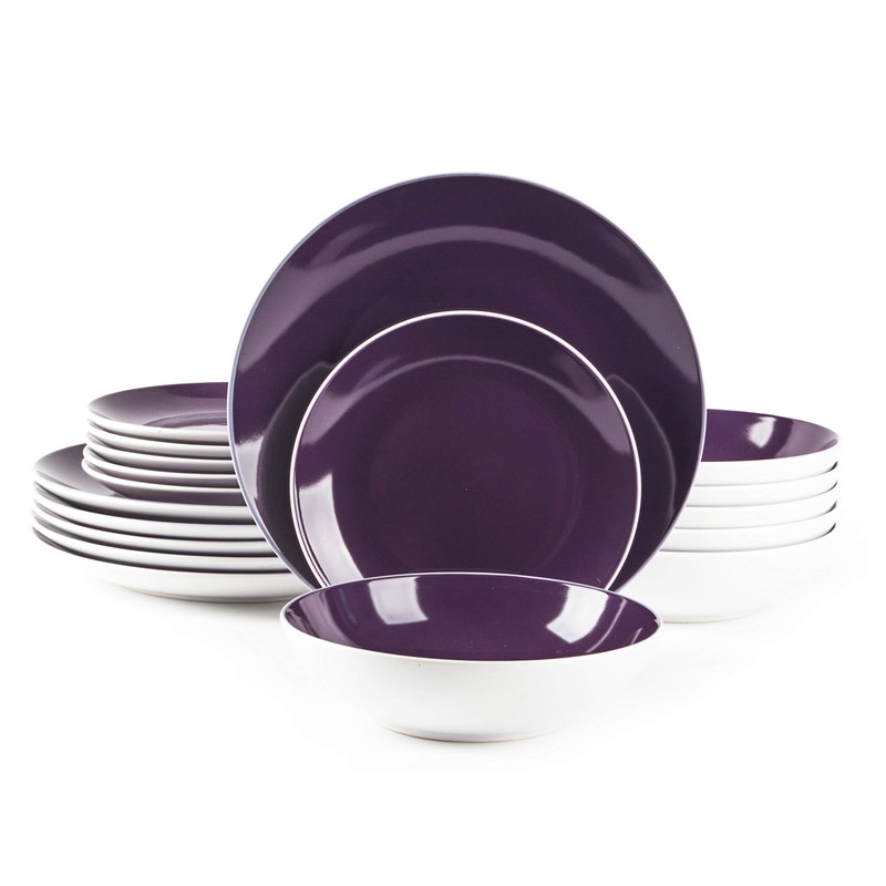 HomeVss, Stoneware Coupe Shape 18pc Dinnerware Set, Outside White + Inside Violet