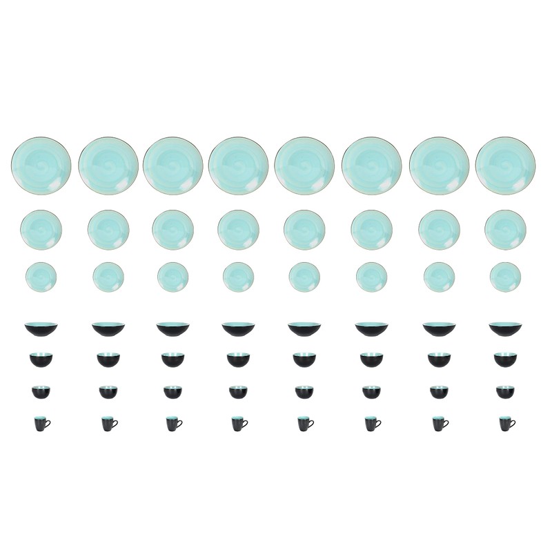 HomeVss, Stoneware Sonoma Dinnerware Set, Black + Speckled Spin Wash (56pc Set, Turquoise)