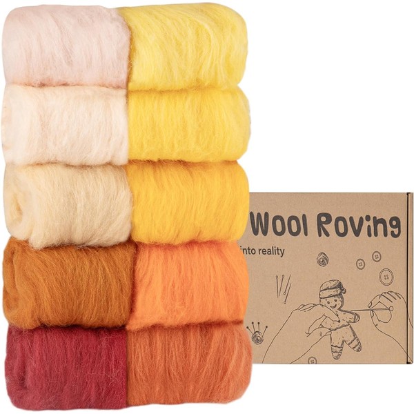 Homewit Needle Felting Wool, Wool Roving 10 Colors Set, Roving Wool, Wool Felting for Hand Spinning,Wet Felting, Fibre Wool Roving Needle Felting Supplies DIY Handicrafts-100g