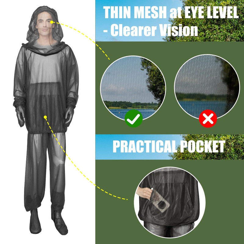 • 【Perfect Protection】High density fine mesh designed to shield whole body. Safe and comfortable to wear and free to move, mesh clothing effectively protects you. Perfect for camping, hiking, hunting, gardening, fishing, etc.