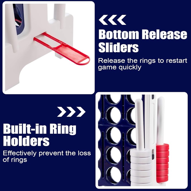 HOMGX 4-Point Giant Game Set, Family Outdoor Courtyard Game, w/ 42 Giant Rings and Quick Release Sliders, Plastic Quadruple Chess Set for Children and Adults