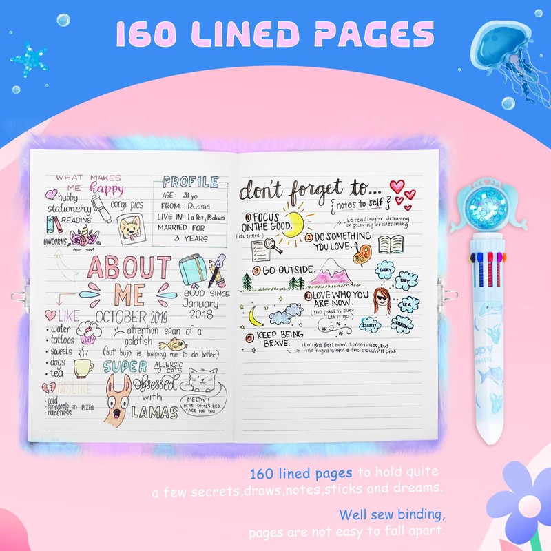homicozy Mermaid Diary for Girls with Lock and Keys,Tie-Dye Fuzzy Journal for Kids with 160 Lined Pages,Fluffy Secret Notebook for Writing and Drawing,Gifts for Girls Over 3 Years Old,Purple