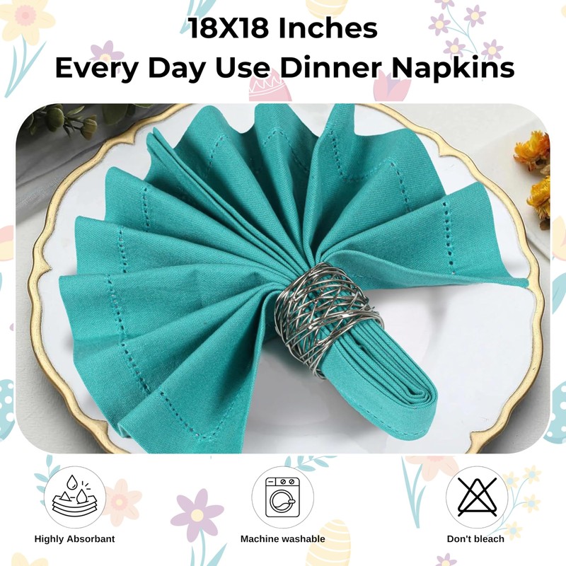 HOMIDATE Cloth Napkins Set of 12 –Hemstitched Dinner Napkins, Machine Washable, 18x18 Wedding & Event Napkins, Latigo Bay