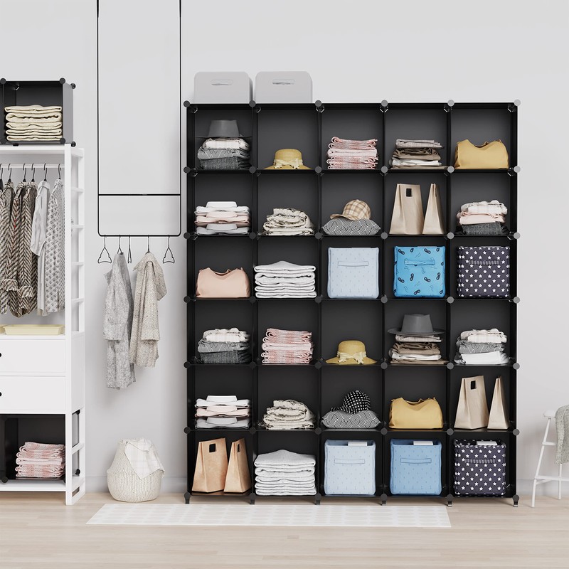 HOMIDEC Closet Organizers and Storage, 16 Cube Storage Organizer, Closet Organizer Bookshelf Cubes Shelves for Clothes, Bedroom, Kids Room, Bathroom, Wardrobe, Garment Racks, Black