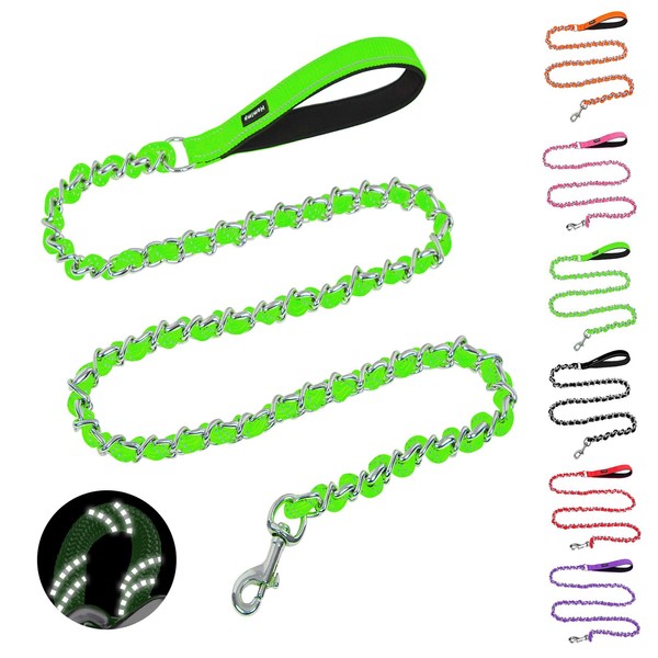 HOMIMP Chew Proof Dog Leash for Medium Large Dogs, Reflective 6 FT Heavy Duty Metal Chain Dog Leashes with Soft Padded Handle, Anti Bite Durable Rope Leashes for Pitbull, Non Chewable